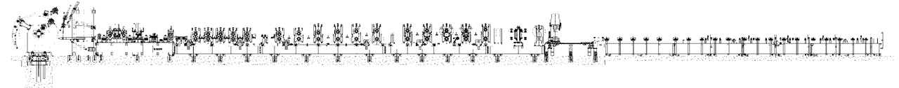 TF钢管束冷弯生产线,具备中板开卷、校平、剪切对焊,辊压成型,剪断、码垛等自动化流水生产功能。主机可生产腰高240mm,底宽130mm,厚度3-6mm多规格钢管束制件;只需3分钟,就可调整生产型钢的高度、宽度规格;大型伺服跟踪飞剪,在内首次实现了不降低速无废料切断。