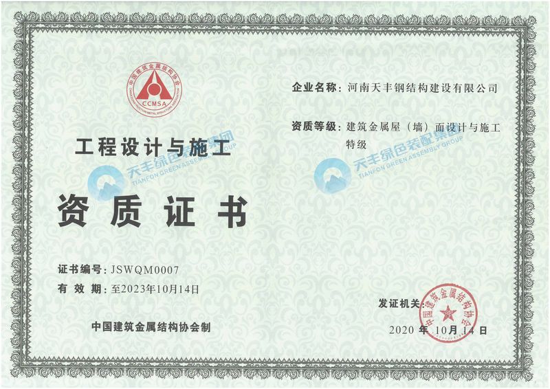轻型钢结构工程设计专项甲级